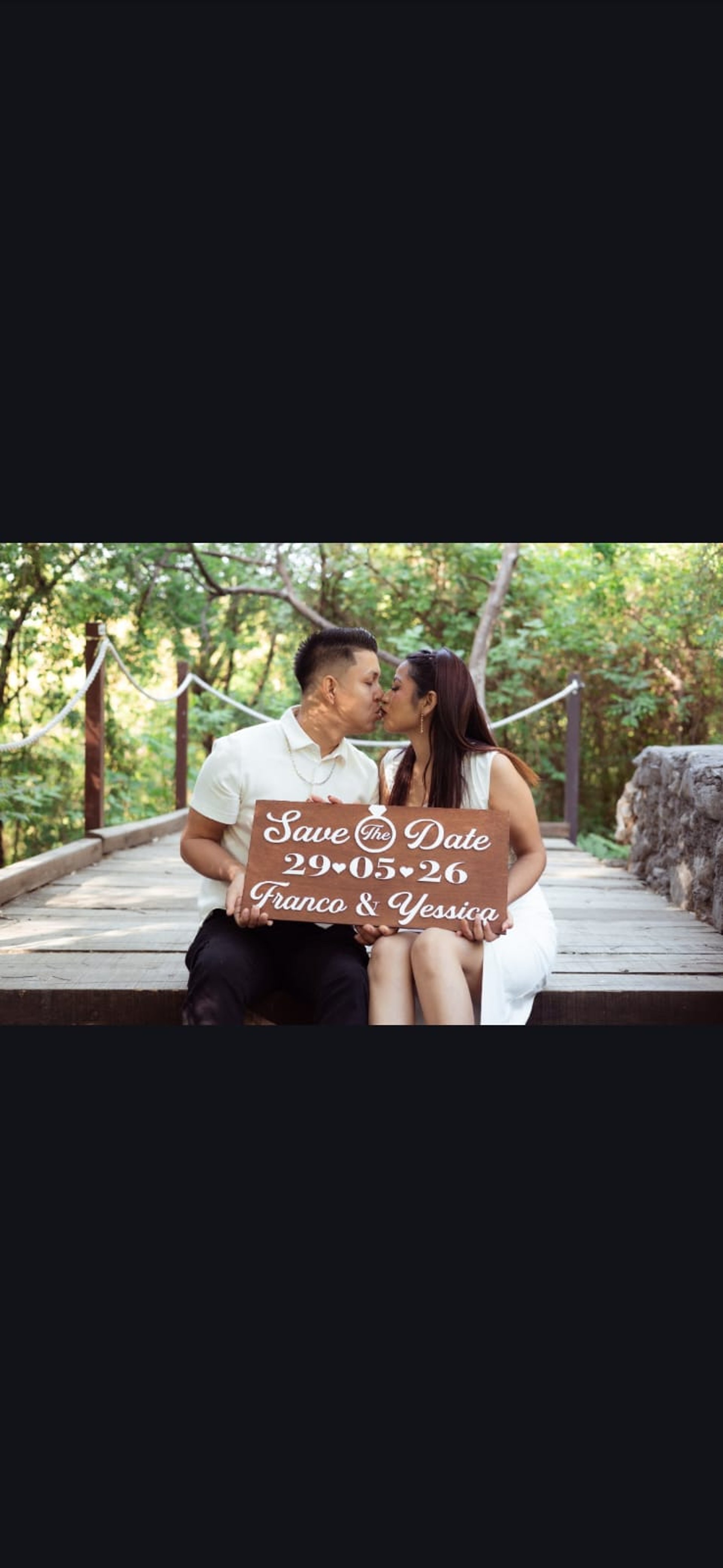 "Cuando nos conocimos, entendimos que nos uniría algo más fuerte que el tiempo y la distancia. Hoy damos gracias a Dios por habernos hecho coincidir en el camino y empezar UNA VIDA JUNTOS."